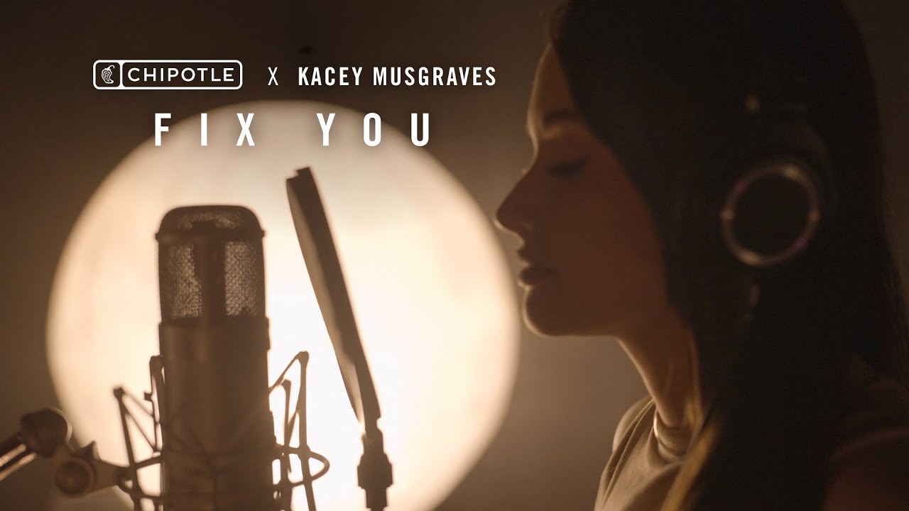 Kacey Musgraves covered Coldplay's "Fix You" for a new Chipotle commercial. Her new cover plays in ad ad called A Future Begins, which is described as "a short film supporting the next generation of framers." The animated video is a sequel to a 2011 ad that featured Musgraves' buddy Willie Nelson also covering Coldplay for Chipotle.
