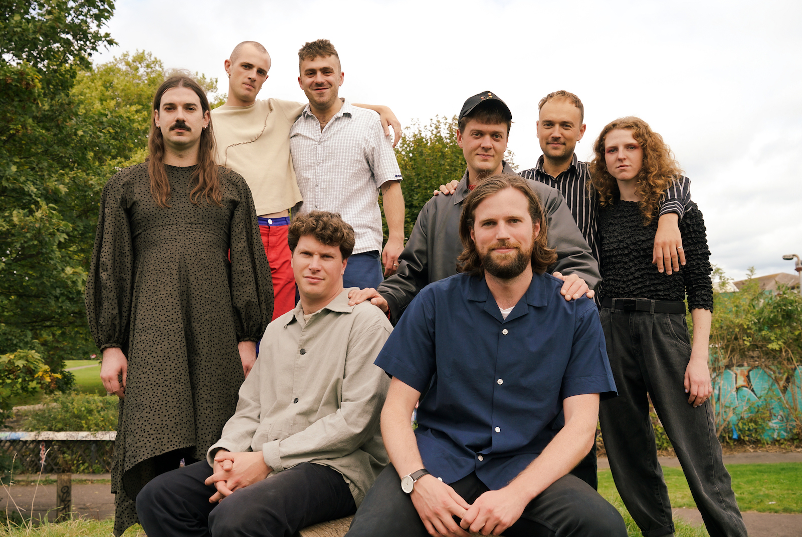 Unwittingly, the technical difficulty and its eventual resolution served as a microcosm of the experience of watching caroline live or listening to their music: They provide a communal experience like little else out there. "I still think about that all the time," a smiling Freddie Wordsworth says of the Green Man set today, round the table of a pub in London’s Hackney neighborhood with his seven bandmates.
