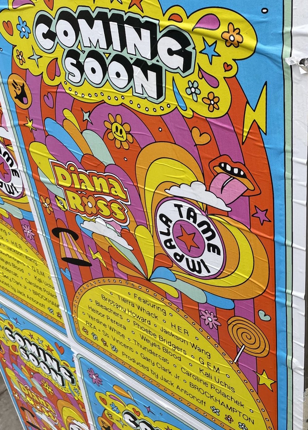 In the past few days, posters pasted up on walls in London have teamed some kind of all-star music thing. The poster lists Diana Ross and Tame Impala across the top, an intriguing combination, and it also states that it's "produced by Jack Antonoff." It looks a little bit like a music-festival poster, but it can't be that. The poster lists Brockhampton, who just played their final show at Coachella. Instead, it seems likelier that this poster is advertising the soundtrack album for the forthcoming motion picture Minions: The Rise Of Gru.