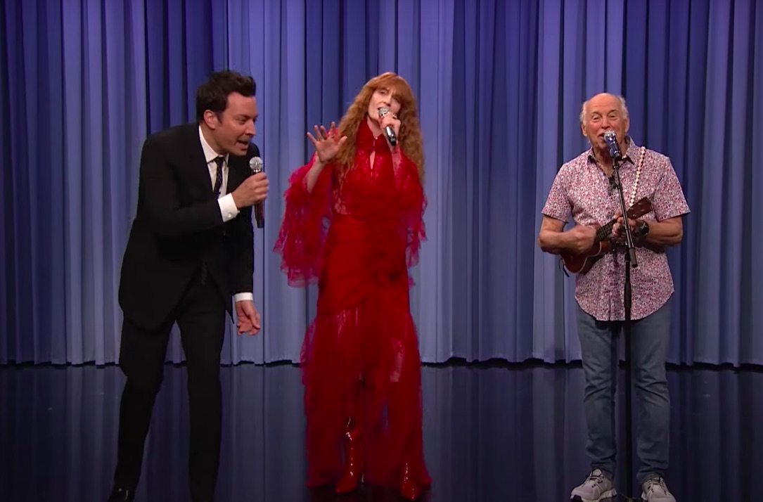 The comedy-bit portion of the evening came during a bit called "Audience Suggestion Box," where Jimmy Fallon responds to fake requests from the audience. One of those bits involved Jimmy Buffett coming out to sing "Margaritaville," the 1977 hit that never goes away. Then there was a joke about how Fallon has had Buffett's lost shaker of salt this whole time. Finally, the segment ended with Florence coming out to finish singing "Margaritaville," with Buffett and Fallon joining in. You will not believe this, but those three singers did not mesh terribly well. Below, watch the "Margaritaville" singalong, as well as Florence's performance and interview.