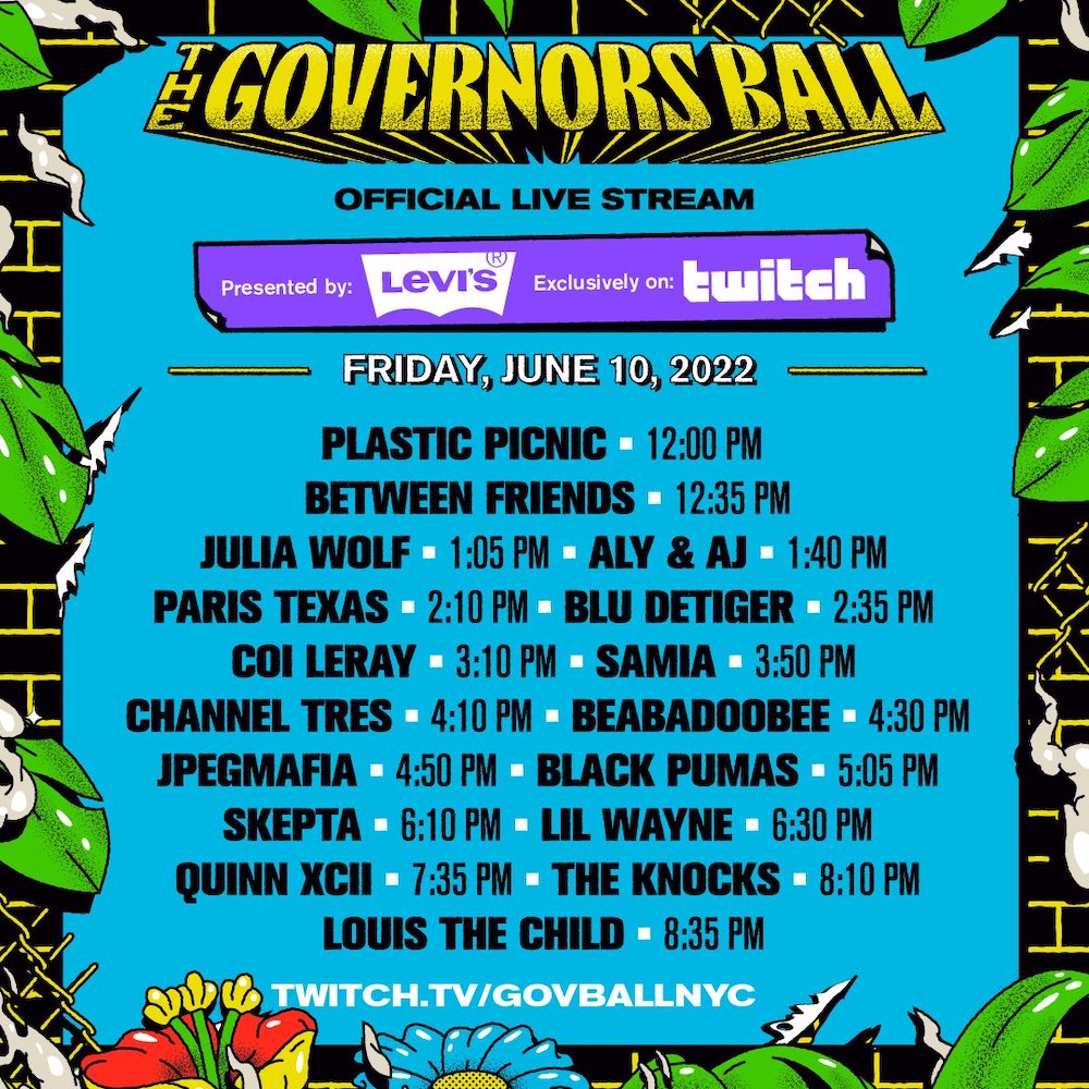 If you can't make it to New York to experience the festival in person, Gov Ball is also offering a free livestream of each of its three days. It's presented by Levi's 501s and taking place on Twitch.