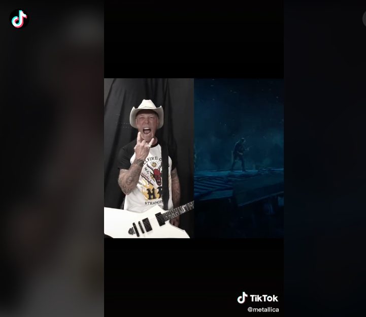 The final episode of Stranger Things season 4 involved Doja-Cat-beloved metalhead Eddie Munson (Joseph Quinn) playing Metallica's "Master Of Puppets" on guitar, with tracks recorded by Metallica bassist Rob Trujillo's son Tye. Metallica were stoked; in addition to issuing a statement celebrating the scene, they scolded their old-head fans for trying to gatekeep newcomers who discovered the song through Stranger Things. Now they've continued to celebrate the resurgence in exposure by playing along with the scene for a new TikTok video. Below, watch that video and wonder whether Metallica will end up in the Hot 100 top 10 like Kate Bush did.