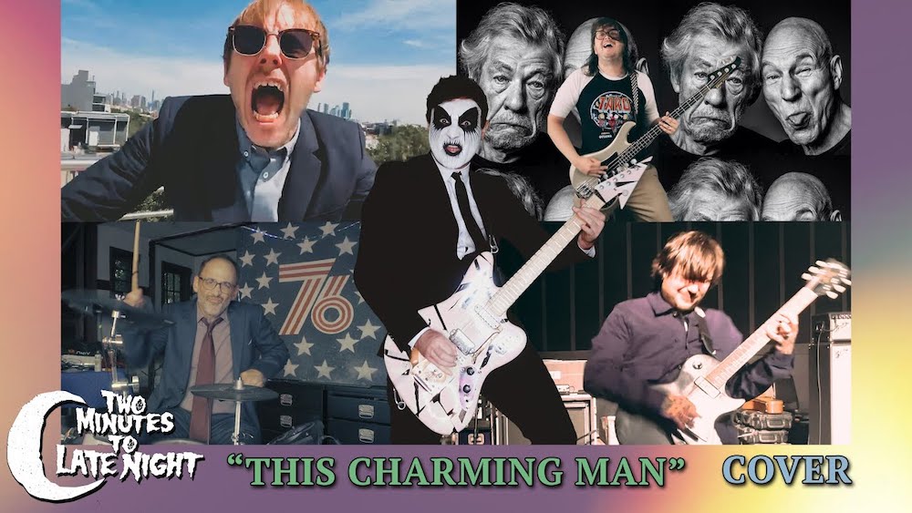 In recent weeks, Jordan Olds' great video series Two Minutes To Late Night has been running its Hardcore Summer miniseries, saluting bands like Botch and Converge. In their latest video, though, they take a break from all that for an all-star take on "This Charming Man." Geoff Rickly, from Thursday and the newly reactivated No Devotion, sings lead, with My Chemical Romance's Frank Iero on guitar and PUP's Nestor Chumak on bass. Jordan Olds joins in, and there's also a running bit where Two Minutes To Late Night producer Drew Kaufman keeps trying to serve David Wain lunch while he's playing drums. (Two Minutes To Late Night, it's worth noting, paid tribute to Wet Hot American Summer last year with their version of Jefferson Starship's "Jane.")