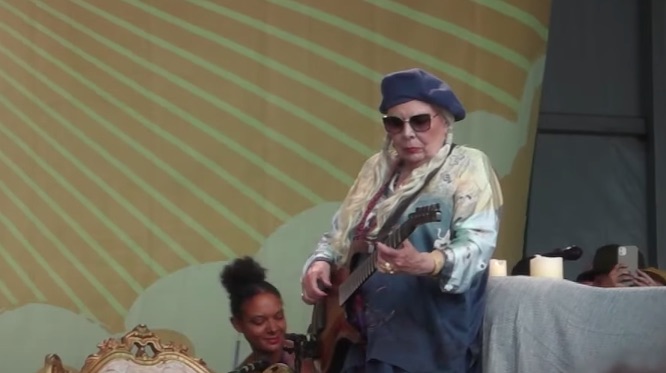 Earlier this year, Mitchell was honored at the pre-Grammys MusiCares gala, where she was named Person Of The Year and where she got onstage to sing a couple of songs. That performance was Mitchell's first in nearly a decade. Yesterday's Newport set was considerably more ambitious than that. Michell's set, called the Joni Jam, was not previously announced, and it included renditions of beloved classics like "A Case Of You," "Big Yellow Taxi," and "Both Sides Now," as well as covers of some of Mitchell's favorite oldies.