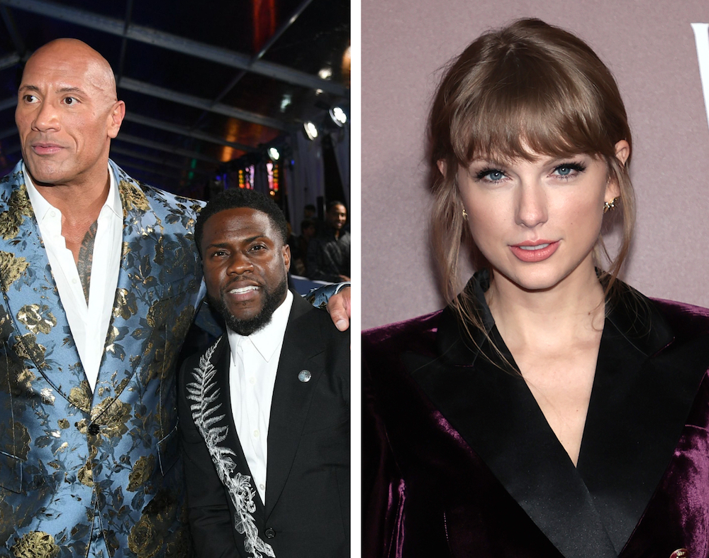 The Rock shared a TikTok where he and Hart are listening to "Bad Blood (Taylor's Version)," and the two do a bit about how Hart can't hear him because he's wearing air pods. "Clearly @imkevinhart has problems (being an as*hole) and I don't think we can solve them," he joked in the caption. There's also a clip from the movie that debuted last fall featuring the Rock's character sobbing to "Bad Blood" while eating ice cream. At the time, fans suspected the re-recorded "Bad Blood" was playing, and they were right.