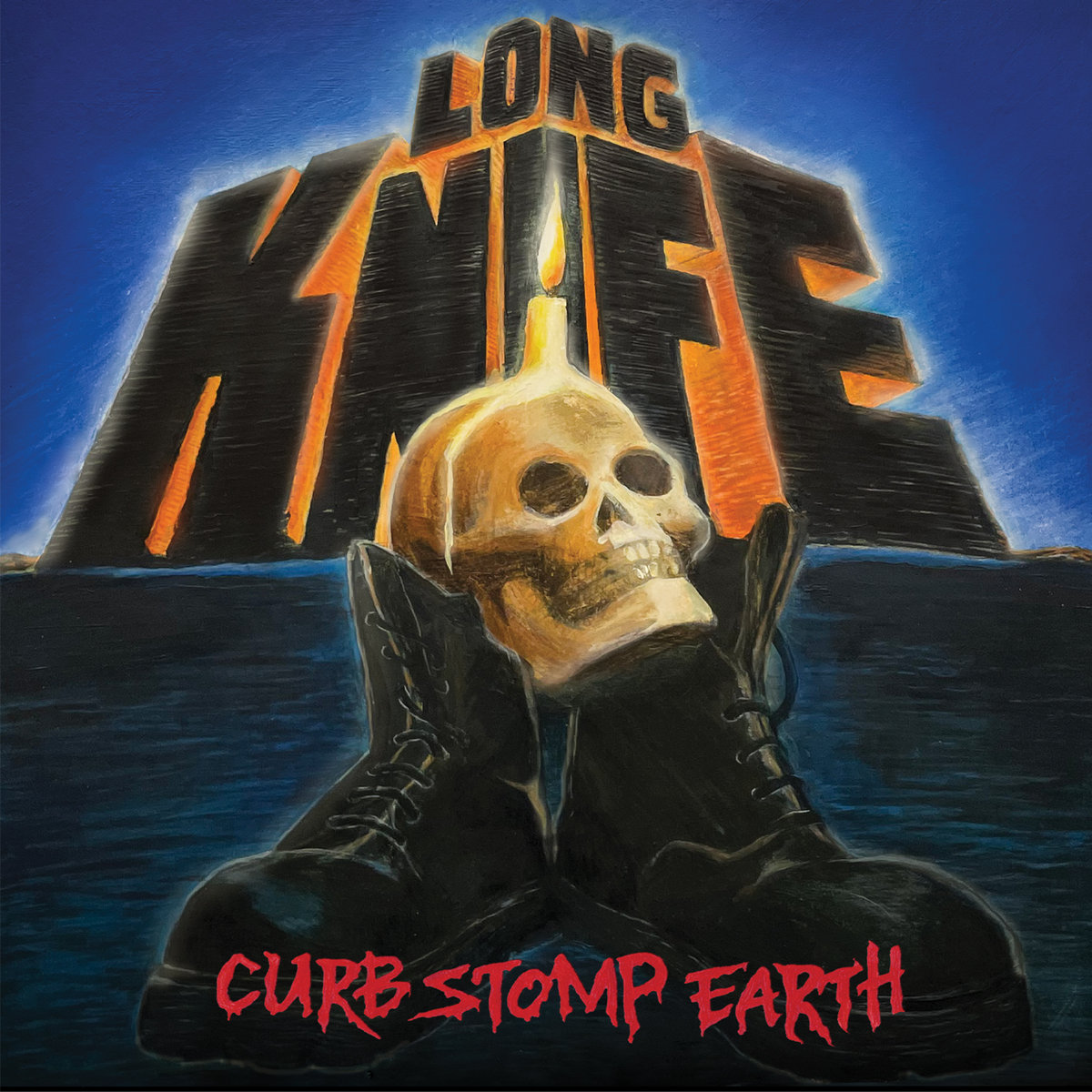 Long Knife have been around for a decade, and they crank out new music whenever they feel like it. Two years ago, the two-song single "Night Of The Hunter" b/w "Rough Liver" knocked out at least three of my teeth. Today, Curb Stomp Earth arrives with no advance notice, and it's Long Knife's first full-length since 2015's Meditations On Self Destruction.