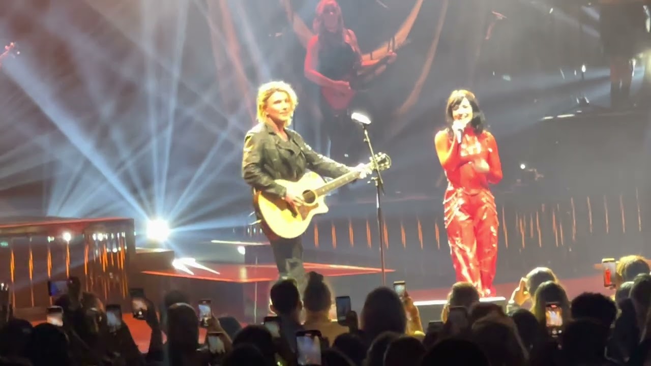 Demi Lovato has been covering Goo Goo Dolls' "Iris" at most of her recent shows, usually mashing it up with her own similar-sounding track "4 EVER 4 ME." Last night, Lovato performed at the Beacon Theater in New York, and the pop star brought out Goo Goo Dolls' very own John Rzeznik to sing it alongside her.