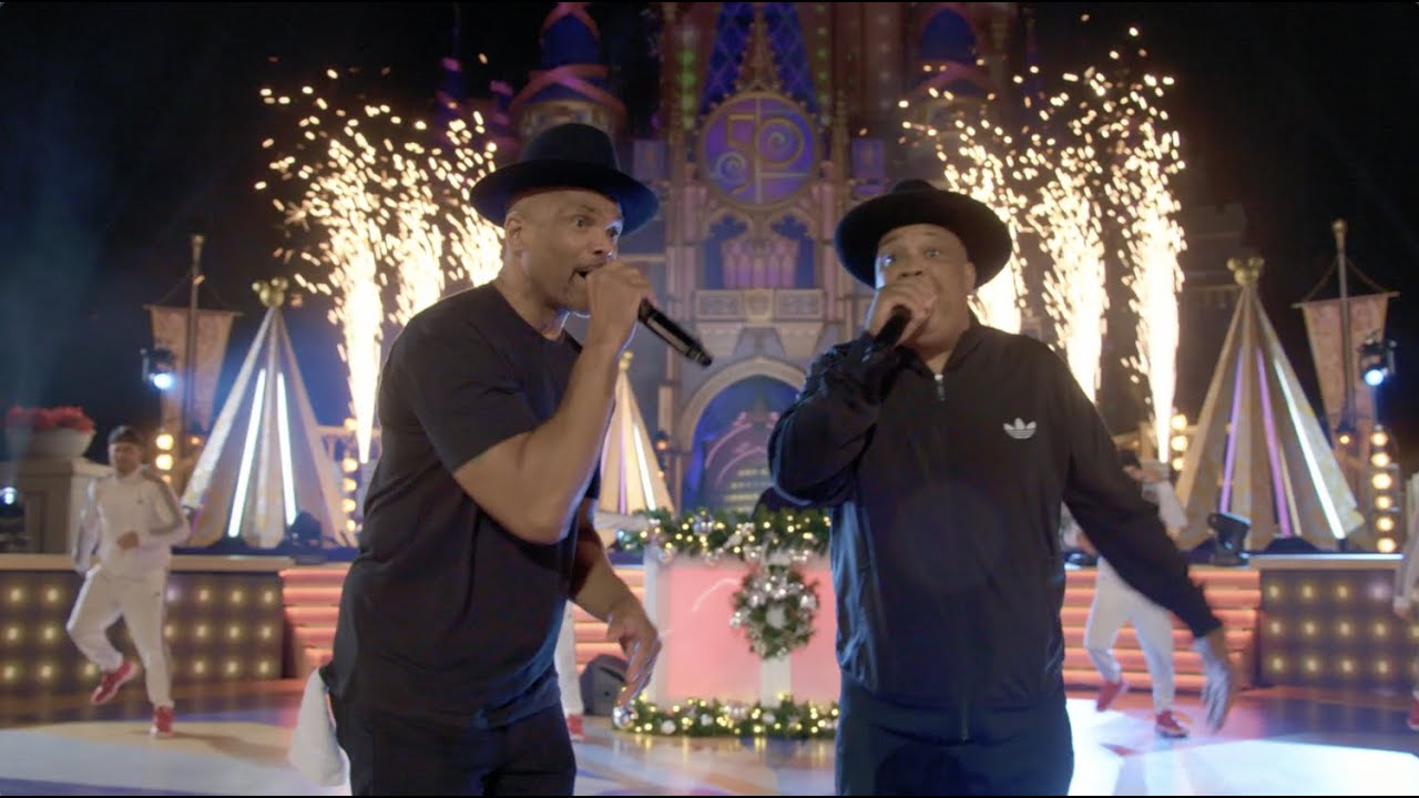 The remaining members of Run-DMC performed their classic "Christmas In Hollis" for the first time in nearly two decades for The Wonderful World Of Disney: Magical Holiday Celebration, a special that will air in full on ABC this weekend. The pair performed at one of the Disney parks, and they were introduced by the Black Eyed Peas, who also do a couple songs in the special. Watch a clip of Run-DMC's performance via Billboard below.