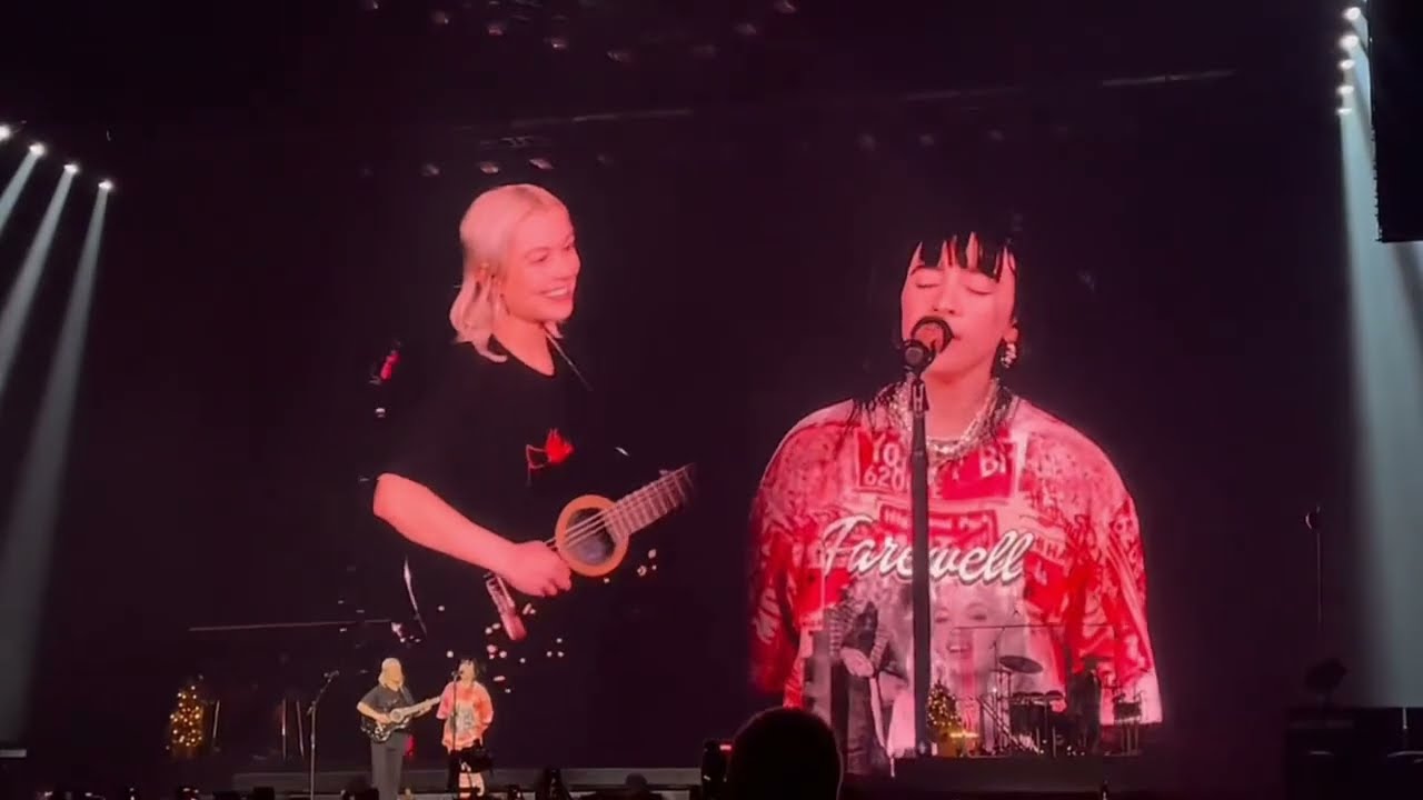 Right now, Billie Eilish is in the middle of a three-run show at her hometown arena, the Kia Forum in Los Angeles. Earlier this week, at the first of those shows, Eilish sang "Have Yourself A Merry Little Christmas" and brought out Labrinth for a couple of duets on songs from the Euphoria soundtrack. Last night, Eilish played her second Forum show. She sang "Have Yourself A Merry Little Christmas" again, and she also brought out a pair of surprise guests.