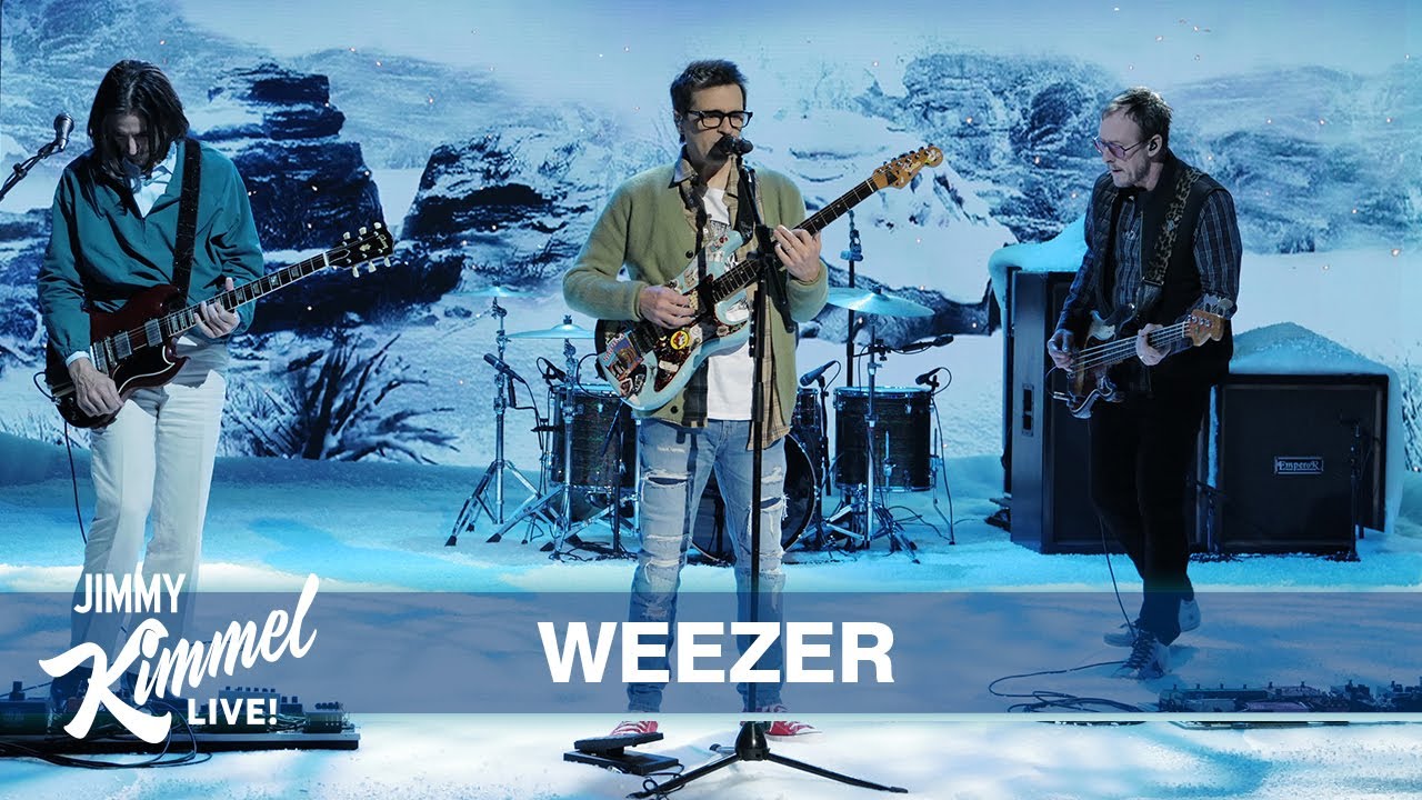 This year Weezer have released an EP themed around each of the four seasons, and each EP has been preceded by a performance on Jimmy Kimmel Live! The last of the SZNZ EPs, SZNZ: Winter, is dropping on the Winter solstice this Wednesday, so Rivers Cuomo and company returned to Kimmel to play "I Want A Dog" amidst an artificial snowfall. It's pretty good by latter-day Weezer standards! Pour a few more cups of coffee into Cuomo and it might pass for an anxious Blue Album outtake. Watch the performance below.