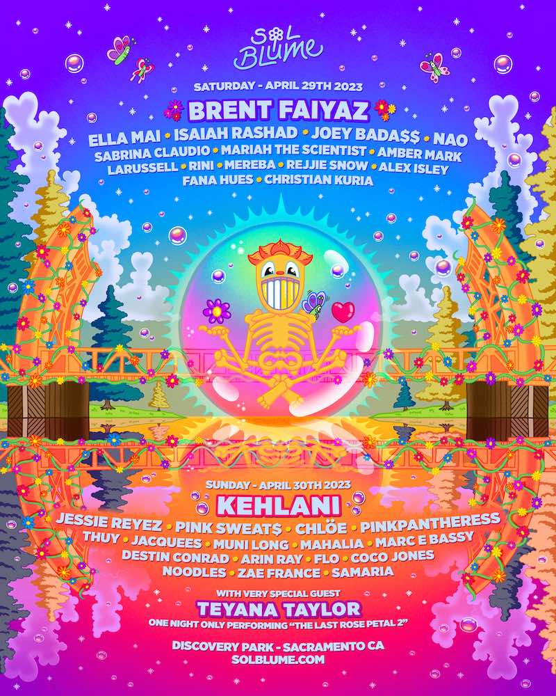 R&B/soul/hip-hop fest Sol Blume is set to return for a fourth year on April 29-30 at Discovery Park near Downtown Sacramento. Headlining the fest this year will be Kehlani and Brent Faiyaz, and additional performers include Ella Mai, Nao, Sabrina Claudio, Mariah The Scientist, Amber Mark, LaRussell, Rini, Mereba, Isaiah Rashad, Joey Bada$$, Teyana Taylor, Jessie Reyez, Pink Sweat$, Chlöe, PinkPantheress, Thuy, Jacquees, and more. Check out the full day-by-day breakdown below.