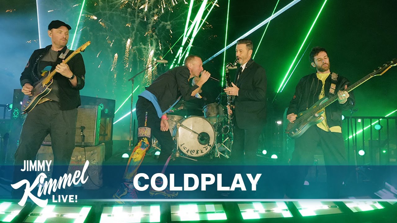 The first episode of Jimmy Kimmel Live! aired Jan. 26, 2003. Last night, to celebrate the 20th anniversary of that broadcast, Kimmel brought back the exact same lineup of guests: George Clooney, Snoop Dogg (who was acting as Kimmel's co-host for the first week), and musical guest Coldplay, who are suddenly all over TV again. There were several moments of split-screen that provided a pretty fun time capsule effect — Snoop looks exactly the same, Clooney does not — and everyone did a lot of reminiscing, as you'd expect on an anniversary show. Kimmel compared Snoop's rider from 20 years ago to his current rider, Clooney brought out some liquor to share with everyone onstage, and Coldplay did Coldplay things.