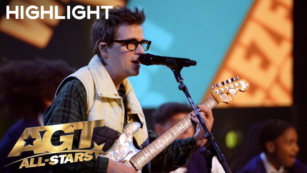 Weezer are having a really high-profile week: first, they announce the "Indie Rock Roadtrip" (aka a summer tour featuring a rotating lineup that includes Modest Mouse and Momma, Future Islands and Joyce Manor, and Spoon and White Reaper), then Rivers Cuomo duets a TikToker and invites him to riff "Buddy Holly" live onstage this summer. Last night, Weezer guested on America's Got Talent, where, with some help from the Detroit Youth Choir, they played SZNZ: Autumn song "What Happens After You?" and Make Believe classic "Beverly Hills." The performance even got a big smile from Simon Cowell, who called the set "absolutely brilliant" and "magic."