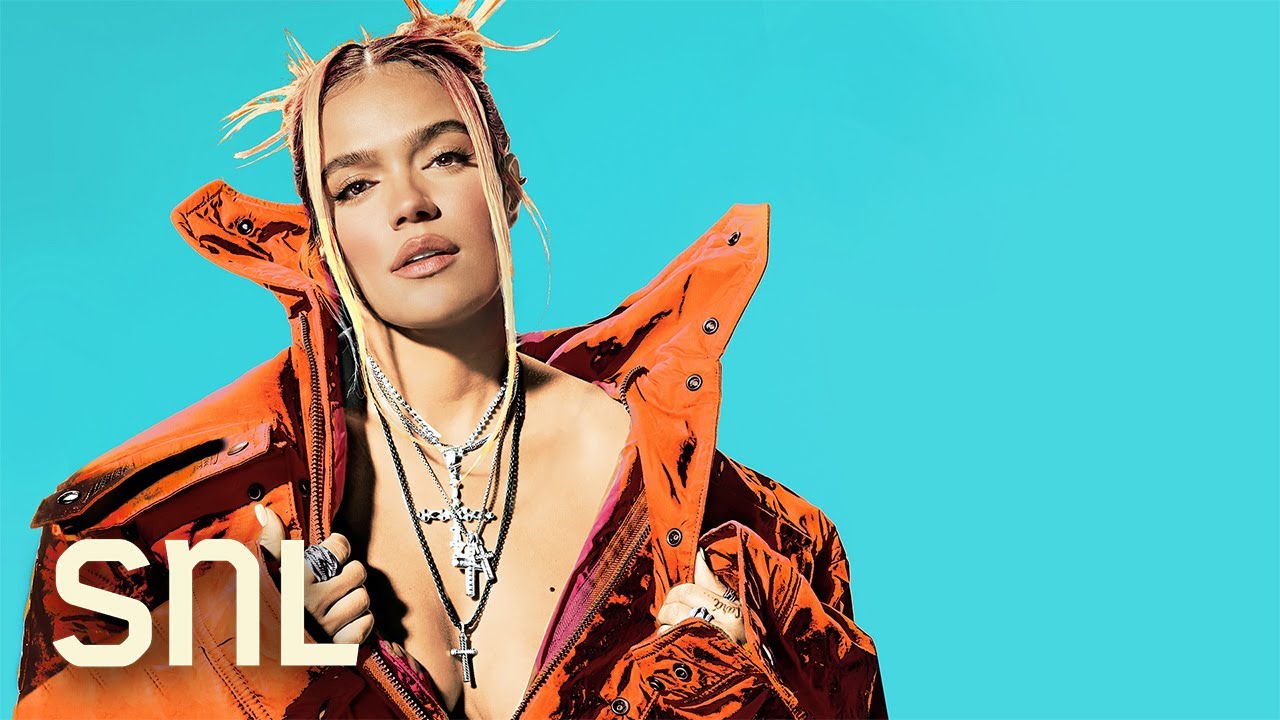 Last month, the Colombian musician Karol G became the first female artist to land a Spanish-language #1 album on the Billboard 200 chart. Not long after that, she was announced as a Saturday Night Live musical guest. This weekend, she made her debut on the show, opposite host Ana de Armas, and she performed two tracks from Mañana Será Bonito, "Mientras Me Curo del Cora" and "Tus Gafitas."