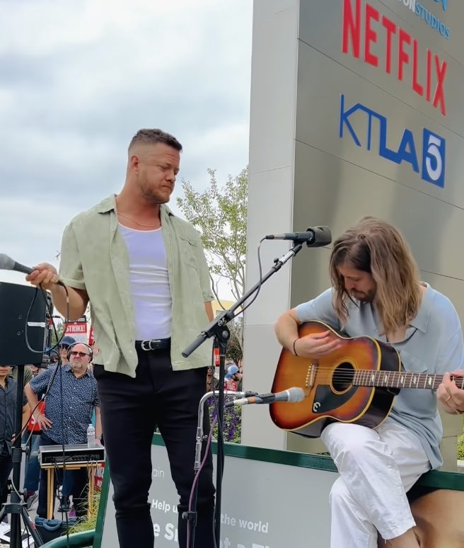 The Writers Guild Of America continued its strike today, and it won't be ending any time soon, as the union’s negotiations with studios and streaming services are going nowhere. Not long after Snoop Dogg expressed his support for the writers, Dan Reynolds and Wayne Sermon of Imagine Dragons showed up on the picket line in Los Angeles and performed a mostly acoustic set.