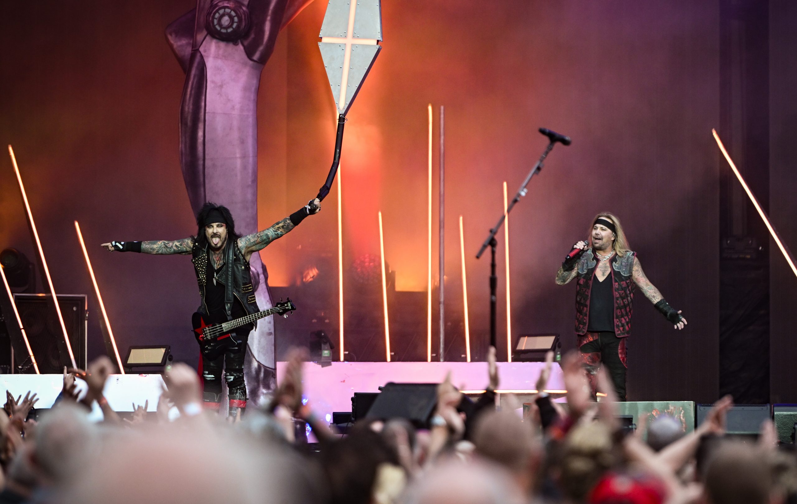 SHEFFIELD, ENGLAND – MAY 22: Nikki Sixx and Vince Neil of Mötley Crüe perform live for the “The World Tour” at Sheffield Bramall Lane on May 22, 2023 in Sheffield, England. (Photo by Anthony Devlin/Getty Images for Live Nation UK)