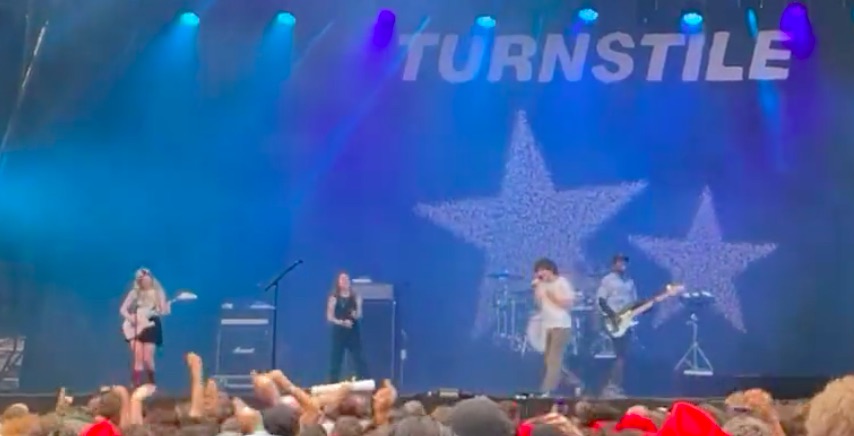 Both Turnstile and boygenius were on today's bill at the massive French festival Rock En Seine. During Turnstile's set, Julien Baker came out to sing "Underwater Boi" with the band, hitting the alternating harmonies with frontman Brendan Yates and getting physically into the whole thing. It's always fun to watch Julien Baker get wild and energetic. When she's doing her own stuff, she doesn't really get to do that, at least not in the same way. There are a couple of videos of the "Underwater Boi" performance up online, and you can watch them below.