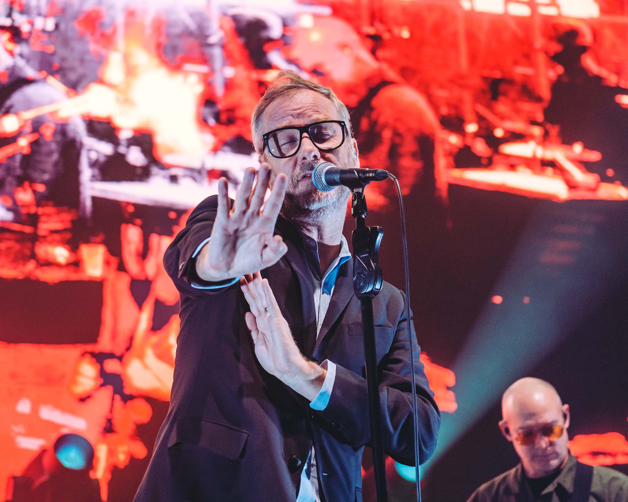 22. The National announced Friday that they're releasing their second album of 2023, Laugh Track, tonight at midnight. The centerpiece of that album, "Space Invader," is my favorite new National song in a decade, an instant classic that proves my concerns about this band being washed were premature. After "Space Invader" popped up on Friday's setlist, I was afraid they wouldn't play it Saturday. Fortunately, this was not the case. "Space Invader" is a powerful song, one that glows, surges, and disappears into silence only to charge back with a three-minute post-rock finale that feels like "Fake Empire" blown out to galactic proportions. The National recognize how powerful the song is — so much so that they played it to close out Homecoming 2023. When the band launched into that final stretch, it was like the grand finale at a fireworks display. Berninger grumbled some baritone growls beneath the noise, then took a seat at the side of the stage and beheld the glory along with the rest of us. In that moment, any concerns about who deserved to open for who melted away.