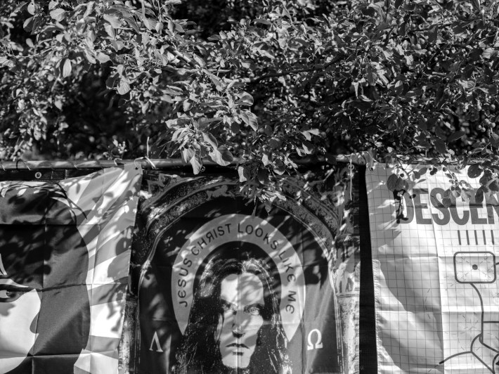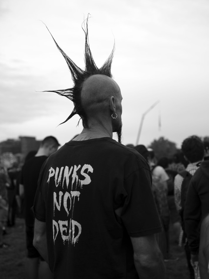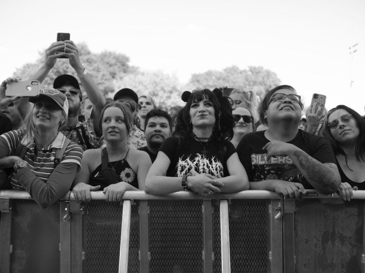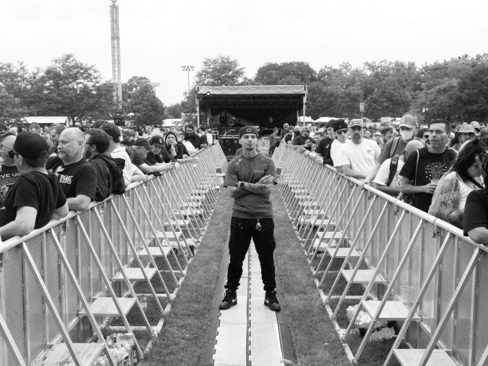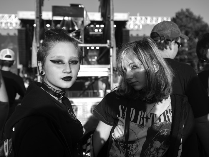 "Music photography is so boring. Fuck stage photos. So what? They're up there sweating? You can get that from AP. I'm interested in people," Danielle explains to the 30s-ish woman, showing her some of the photos she's taken of the Riot Fest crowd. My favorite so far was this punk with real cool earrings — heart-shaped with a hundred sharp, stabby little sabers around their edges. "So, y'know, like real hearts," the punk had said. She was joking, probably, but I convinced myself I could see her entire life flash in her eyes as she said it.