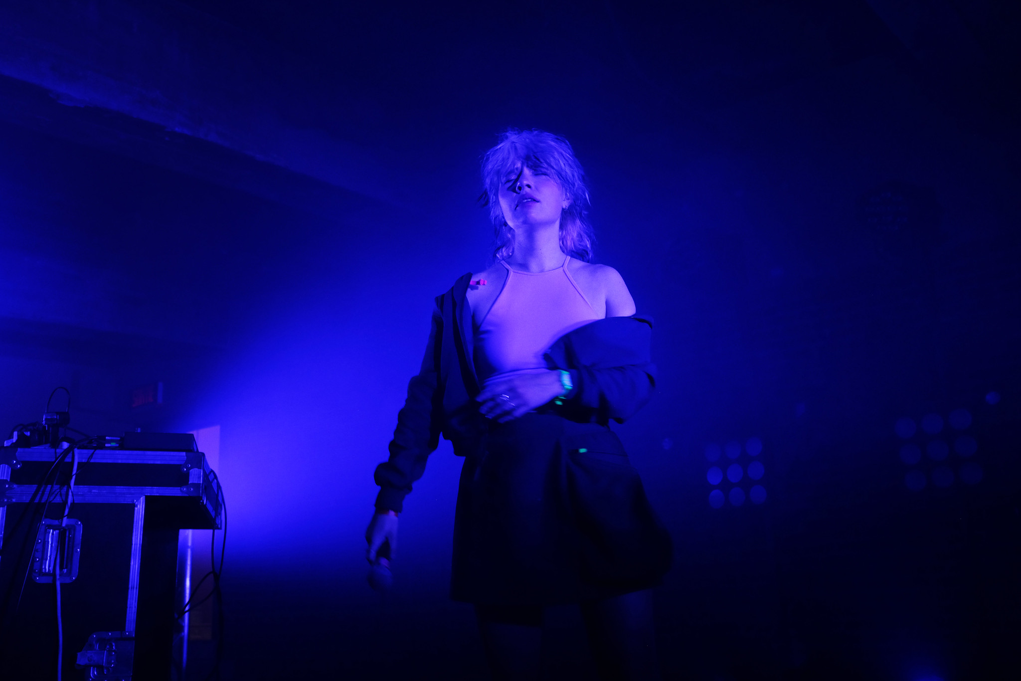 While that was stunning in its own right, Kate NV's set more or less stole the show on Thursday. If you listened to her Album Of The Week honoree WOW back in February, you already partially know the deal: the Russian artist's music is playful and eccentric without devolving into quirky nonsense. But onstage, she structures things differently. For much of the early portions of the set, Kate NV leaned on more restrained, fragmented material — pinging notes and clattering glass beats, music structure almost abstracted into pieces that refused to congeal. Someone described it to me as a sound that felt like it was "connecting your brain cells," which was apt; you could almost feel the squiggly lines being drawn between erratic jumps in the music.