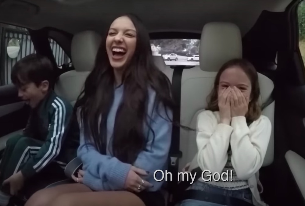 If you have been frequenting this website for a while, you are doubtless aware of the hold that Olivia Rodrigo has on America's middle-aged rock critics. But Rodrigo is also a big deal among our children; it's really one of the only things that middle-aged rock critics have in common with our kids. Apparently, the children of talk-show hosts are no different. Jimmy Kimmel's kids are big fans, and on a segment of Kimmel's show last night, he drove his kids to school and picked up a hitchhiking Olivia Rodrigo. I can now report that Kimmel's daughter is a big ham and that his son would seemingly rather not be on TV. Rodrigo obligingly sat between the kids, sang along with her own songs, endured Kimmel's dad jokes, and delivered a scripted gag about how this isn't Carpool Karaoke.