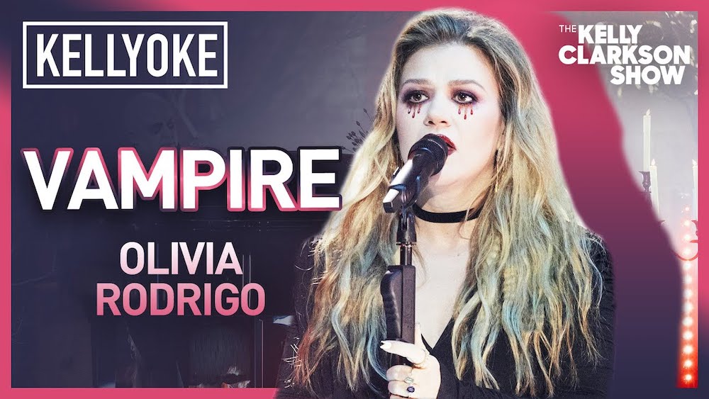 Kelly Clarkson loves a Halloween classic. On her daytime talk show, she tends to go all-out for the holiday, dressing herself and her band up in elaborate costumes and covering spooky-time classics like "I Put A Spell On You" or "Monster Mash." Today, Clarkson and her backing band all dressed up as vampires and naturally covered "Vampire." The song might not quite fit the strict definition of "spooky," but Kelly Clarkson sang the hell out of it, as she does with everything that she covers. Even in abbreviated form, without the cusses, the song sounded great. Below, watch Clarkson's "Vampire" video and Olivia Rodrigo's original video.