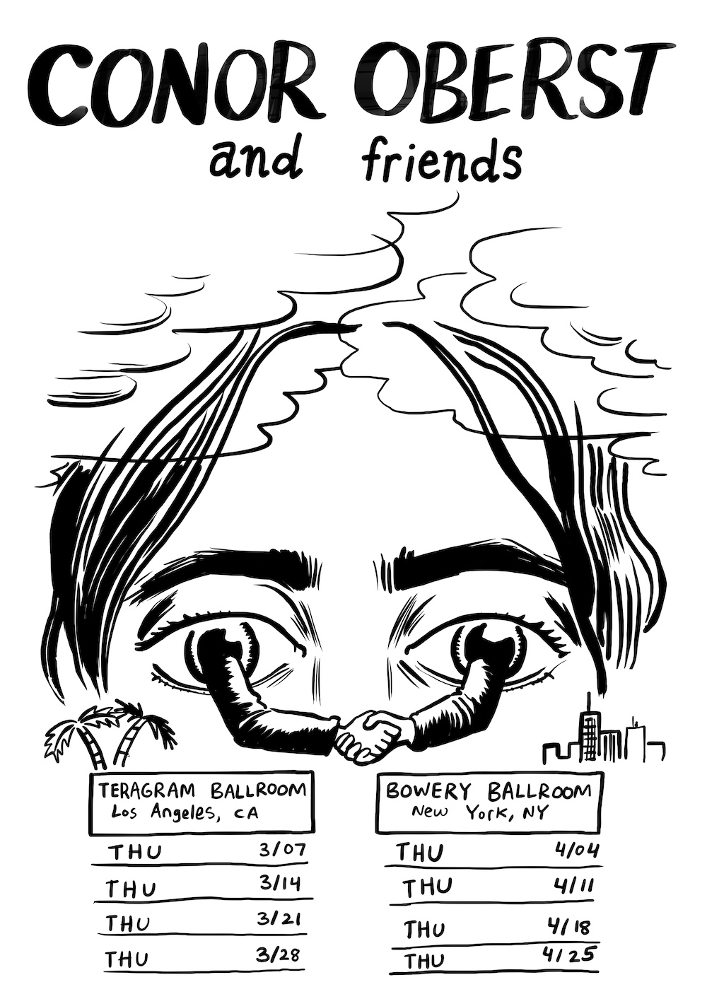 "It will be a lot of work putting together a different band and set every week but it's a challenge I think will be rewarding," Oberst continued. "Luckily I have lived in both New York City and Los Angeles off and on for many years and so I have a lot of musician friends to help me out. It will be an experiment for sure. Looking forward to it. Not completely sure how it will all turn out but that is the best part about it."