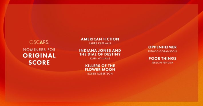 The late Robbie Robertson, who passed away last year, has been posthumously nominated for scoring his old friend Martin Scorsese's Killers Of The Flower Moon. It's Robertson's first Oscar nomination. He's up against John Williams for Indiana Jones And The Dial Of Destiny, Ludwig Göransson for Oppenheimer, Laura Karpman for American Fiction, and Black Midi collaborator Jerskin Fendrix for Poor Things. John Williams already has five Oscars, and Ludwig Göransson has one.