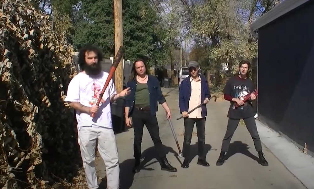 The members of Agriculture, however, did not die with smiles on their faces, as the "Living Is Easy" video makes clear. Instead, the clip, from director Sam Blakesberg, starts out looking like a standard bands-on-tour video -- live footage, landscapes filmed from van windows, backstage antics. But the Chat Pile pranks evidently get to be too much, and we see the two bands locked in mortal combat -- stabbing each other, bludgeoning each other, forcing each other to smoke their own severed fingers like cigars. Honestly, Blakesberg should be ashamed of himself for letting all this carnage happen.