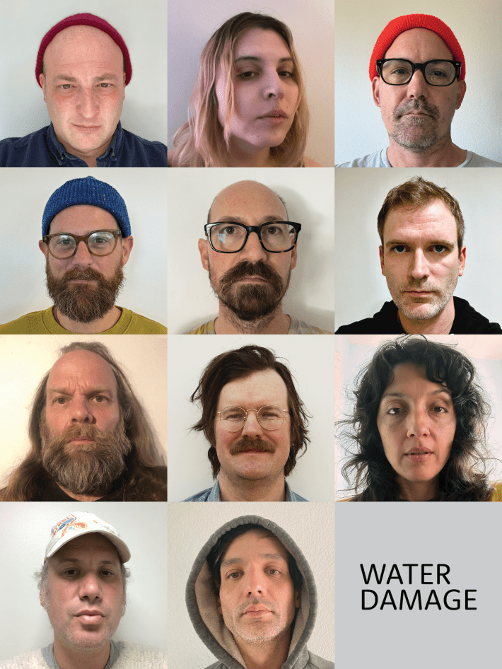 The Austin noise band Water Damage specialize in clattering, droning grooves that cycle onward into infinity until you're locked into a trance — "volume, repetition, volume, repetition, volume and repetition" as their official bio explains. I've found their work to be an incredible soundtrack for writing, and I listed "Fuck This: Reel 11" as my favorite song of last year. The group — Mari Maurice (aka More Eaze), Thor Harris, Jonathan Horne, Nate Cross, George Dishner, Travis Austin, Mike Kanin, Greg Piwonka, Jeff Piwonka, and Lonnie "Palmtree" Slack — put out their awesome 2 Songs album in June, and today they've returned with news of another LP.