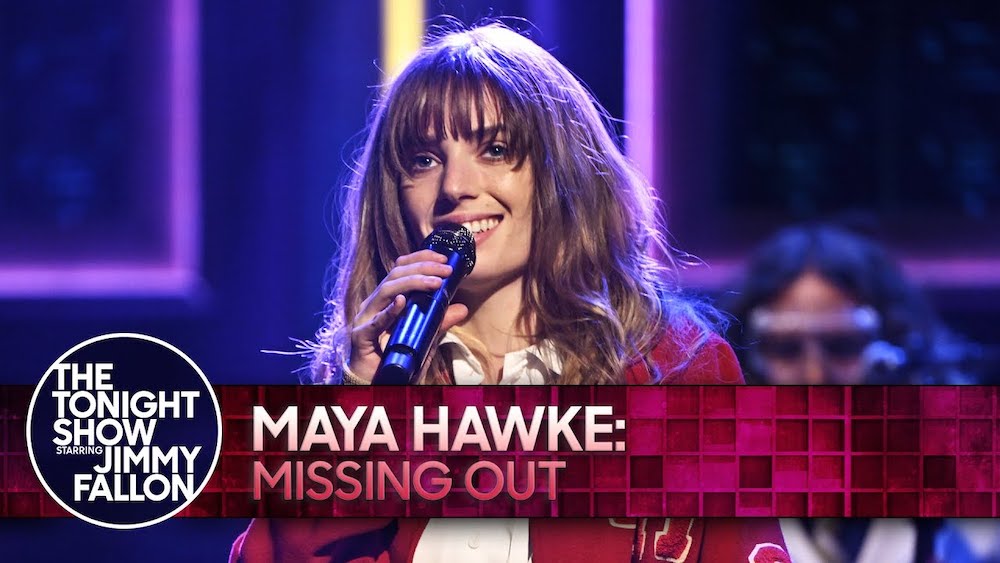 This spring, Maya Hawke will release Chaos Angel, the new LP that she recorded with Christian Lee Hutson, and we've posted first single "Missing Out." That's the song that she sang on Fallon last night. For this performance, Hawke and her backing band all dressed up in wacky costumes. Hawke wore a kind of high-school uniform, the drummer was a lab-coat scientist with goggles, etc. Hawke's dancing reminded me a bit of what she did in the "Dear Alien" scene from Asteroid City, and the whole thing really shot for maximum quirk. You can watch it below.