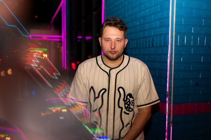 Nils Hoffmann was the second artist to light up the roof at Coconut Club. Hoffmann reigns from behind his booth with ease. He bobbed from side-to-side under a solar system of disco balls. His set felt the most patient and sprawling of the evening, building to galactic drops. When he played the rubbery, synth-focused track "High Power" -- off his third album Running In A Dream, which came out last month -- the air felt buzzier. Compared to Session Victim and the closing act Malugi, Hoffmann’s set was meditative and bright, allowing the crowd to catch its breath a bit. By the water cooler, Justice’s Gaspard Augé looked sleek in a brown suit and leather boots, bobbing his head.