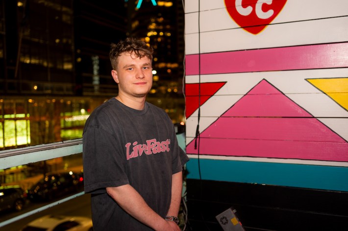 The first performers, Session Victim -- the funk-ified and punk-ified house duo Hauke Freer and Matthias Reiling -- were in their head-bobbing element. Speaking to Stereogum after their set, around the corner from Neon Loft where Kylie Minogue’s "Can’t Get You Out Of My Head" was blaring onto the street, Freer mused: "No matter where we go, where we end up, we try to perform and impress each other. We’re lucky that that often translates to people also liking it."