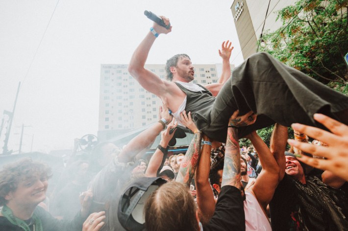 Scowl started our nighttime lineup with a circle pit, and the heavy vibes and head-nodding continued with alexalone, Wishy, Rocket, Joyer, Narrow Head, and Glare on the outside stage. Inside at Cheer Ups, the Topshelf stage brought Mamalarky, Greg Freeman, Smut, Ekko Astral, Squirrel Flower, and Voyeur.