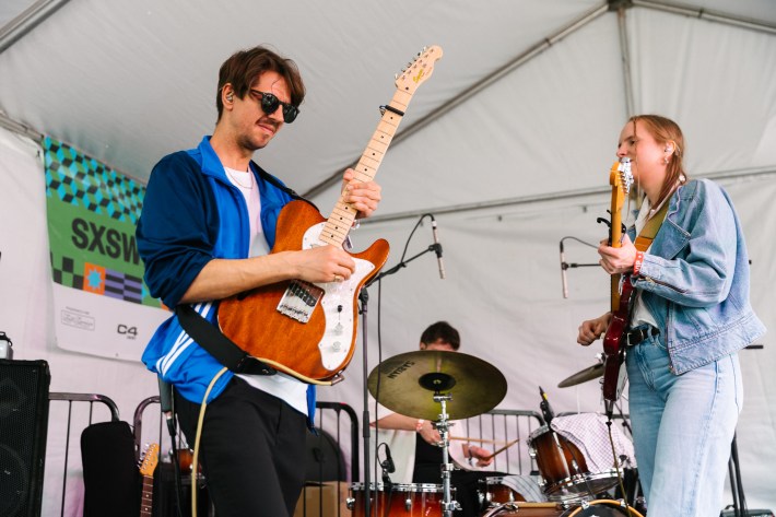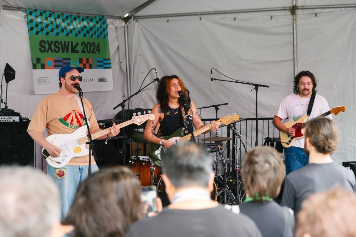 Following their 2023 debut album Gut Punch, the trio are on their third tour in less than half a year. "We're hustling to finish an EP, get some songs out, keep some momentum moving," Max Hirtz-Wolf told Stereogum. "And we definitely have enough songs to also have a second album one day too. We're just trying to push." Asked whether they compartmentalize writing music and touring life, Martin responded: "Touring is serious survival mode, I think especially for me and Max. The writing times are the most regenerative when we can joke around and hang out in our rehearsal room with our drummer Freddy. We get to chill and write. Freddy also runs a studio called Butterama so it's amazing we can just go in and record."