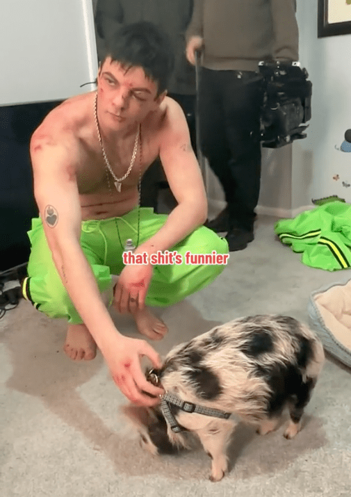 On TikTok, the band posted footage of singer Grian Chatten, shirtless with a giant chain and bright green pants, made up to look like he's got an eye swollen shut among other injuries. In the clip, he's petting a pig — pigs are so in right now — and a snippet of an unreleased song is playing. "I wanna see you alone/ I wanna sharp the stone/ I wanna bounce the bone/ I wanna mess with it," Chatten sings over an urgent boom-bap beat. It sounds like this band's evolution continues apace.
