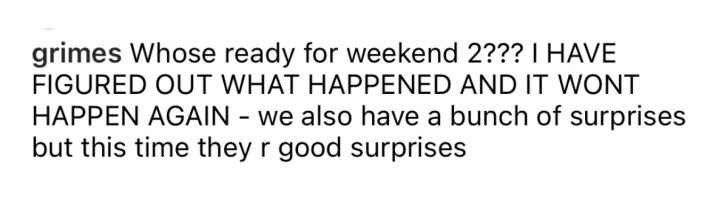 After the show, Grimes sent out a long tweet apologizing for the technical difficulties: