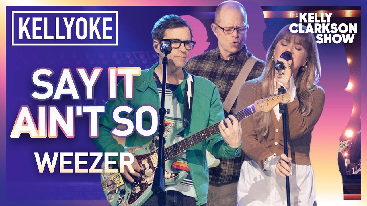 In a few months Weezer will embark on a tour celebrating the 30th anniversary of their self-titled debut, aka the Blue Album. The promo campaign for that venture has led them to The Kelly Clarkson Show. On Kelly, Rivers Cuomo and Patrick Wilson sat with Clarkson and fellow guest Brooke Shields for a panel interview in which Clarkson and Shields couldn't stop laughing at the Weezer boys' geeky, understated demeanor. And for the Kellyoke segment, Clarkson sang the Blue Album classic "Say It Ain't So" with an assist from Weezer. Behold all that daytime talk show entertainment below.