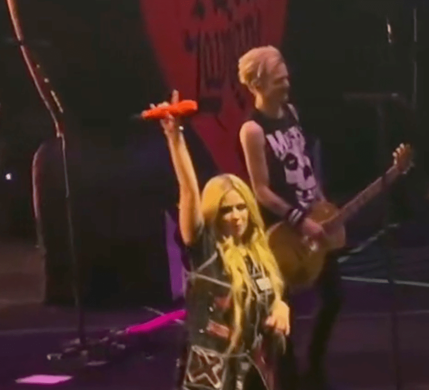 Avril Lavigne brought her Greatest Hits tour to the MGM Grand Garden Arena in Las Vegas Saturday night, and that's not all she brought. Deryck Whibley, Lavigne's ex-husband, was on hand to perform "In Too Deep" from his band Sum 41. Lavigne seemed stoked to have him there, which is nice. Love to see the magnanimity. Watch the full performance, including Lavigne's introduction, below.