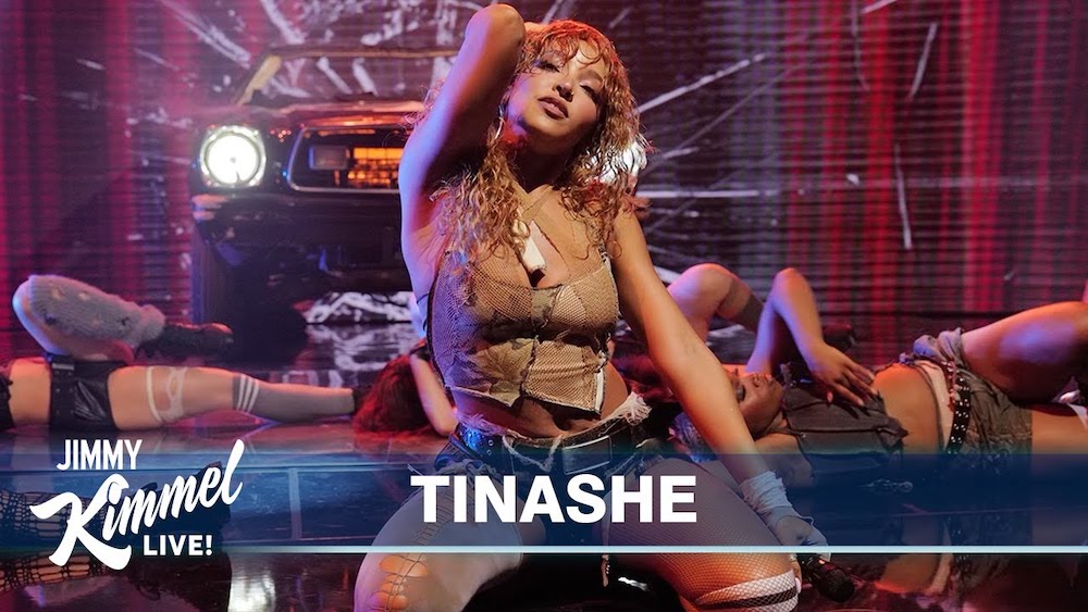 Tinashe's dancing has always been a major selling point, and she did a fully choreographed performance with a phalanx of backup dancers on Kimmel. She mostly restaged the "Nasty" music video, using its mud-spattered muscle car as a stage prop. But she also did that white boy's finger-in-the-mouth move, and the audience whooped in recognition. Watch it below.
