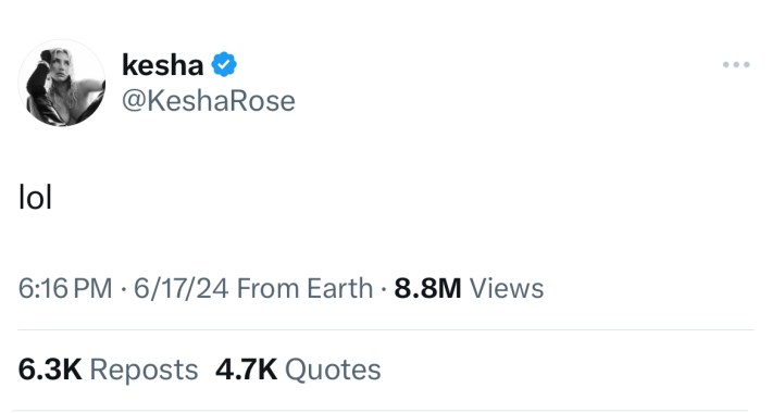 Kesha has seemingly responded to the news by tweeting “lol.”