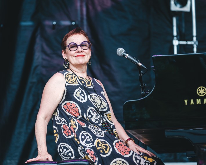 But first, on the big stage, there was Iris DeMent, joined by bassist Liz Draper and guitarist (and singer-songwriter in her own right) Ana Egge. The country folk legend held the then-sunbaked crowd rapt with her impossibly wise and beauteous warble, while telling stories of John Prine and (of course) closing with "Let The Mystery Be."