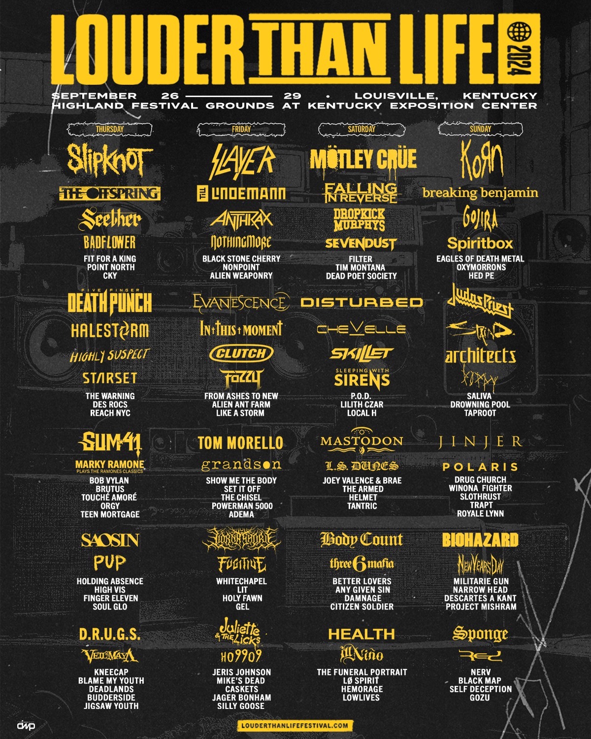 Louder Than Life is currently happening at Kentucky Exposition Center’s Highland Festival Grounds, and the timing isn't great. Hurricane Helene has complicated the schedule, leaving Friday initially delayed and then ultimately canceled. A lot of people were anticipating Slayer's second reunion show, but appear out of luck as the schedule hasn't changed.