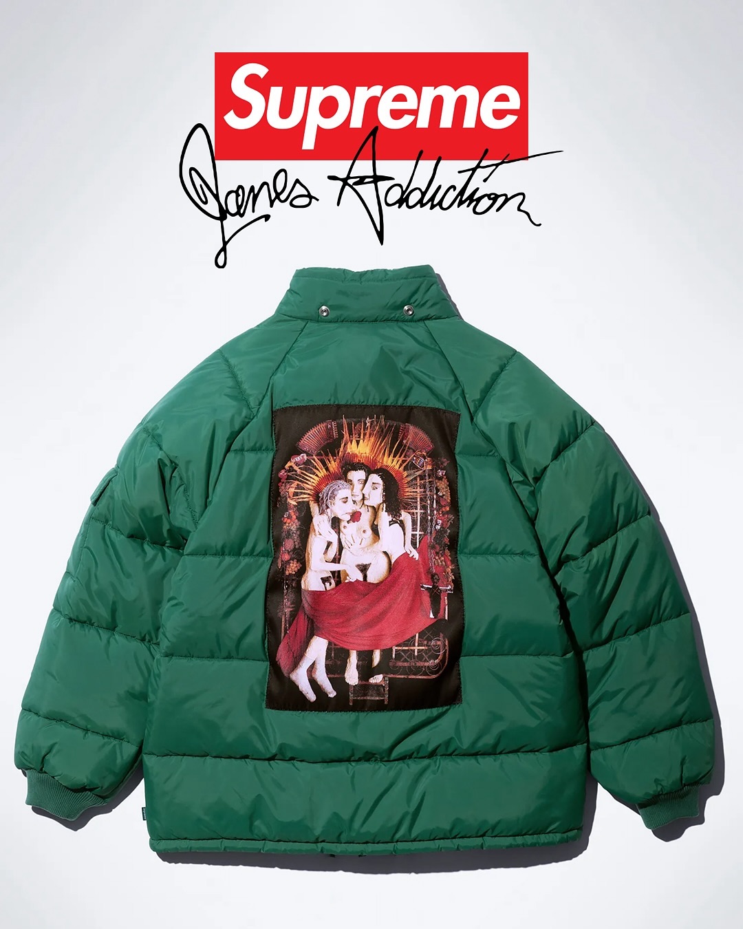 But the band's business machine is, in some capacities, carrying on in zombie fashion despite all indications that Jane's Addiction are finished. Days after the altercation, they released another new single. And now the hypebeast fashion brand Supreme has unveiled its new Jane's Addiction capsule collection.