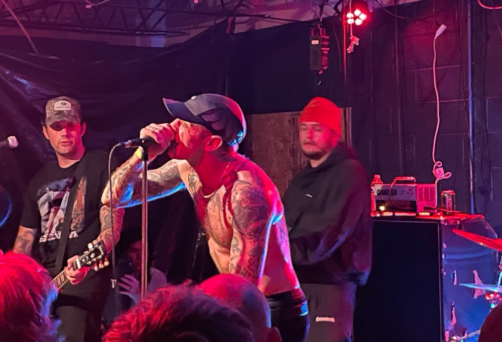 Zelooperz fares better. The Detroit rapper is an X-factor on this tour. Black Noi$e, a Detroit rap producer and occasional Zelooperz collaborator, DJs between sets; it's pretty funny when Bib finish up and he immediately throws on "Big Girls Don't Cry." Still, this is not a rap tour, and Zelooperz is plainly nervous about how this crowd will treat him after so many of them were so cold for Bib. (In a way, this tour is the deeper-underground version of that recent Knocked Loose run where Danny Brown was added to the bill.) Zelooperz is funny and shambolic. He acts as his own DJ, awkwardly cuing up tracks on a beat machine. He keeps shouting out "sandpaper toilet paper," which suggests that he's currently in some physical distress, or at least that he's been in some physical distress recently. He comes just shy of lecturing the audience for Bib's reception. But when he sees that the crowd is having fun, he starts to have fun, too.