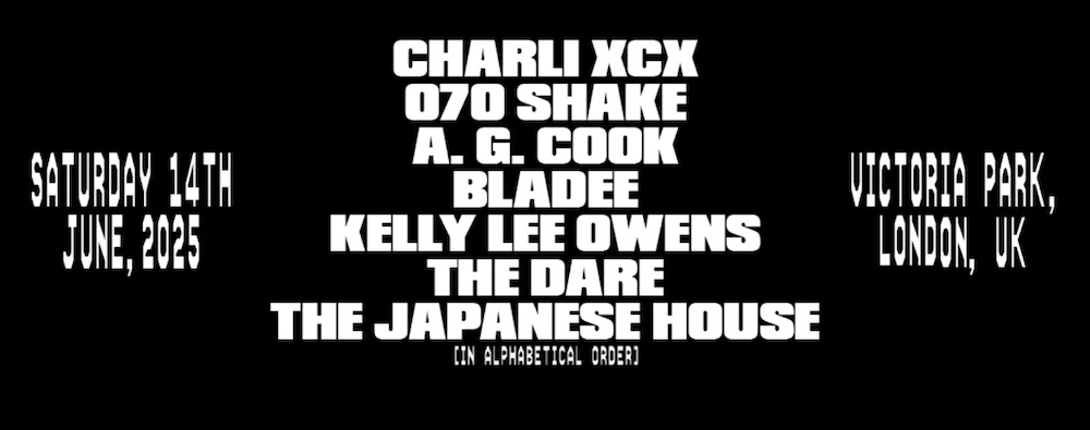 Charli XCX just announced a few more American arena shows, and she'll bring her Party Girl festival to Victoria Park 6/14, a week after the Jamie xx fest. Charli will headline, and the lineup will also feature A. G. Cook, Bladee, the Japanese House, and the Dare, all of whom are recent collaborators. It's also got 070 Shake and Kelly Lee Owens, two people who are not on the Brat remix album.