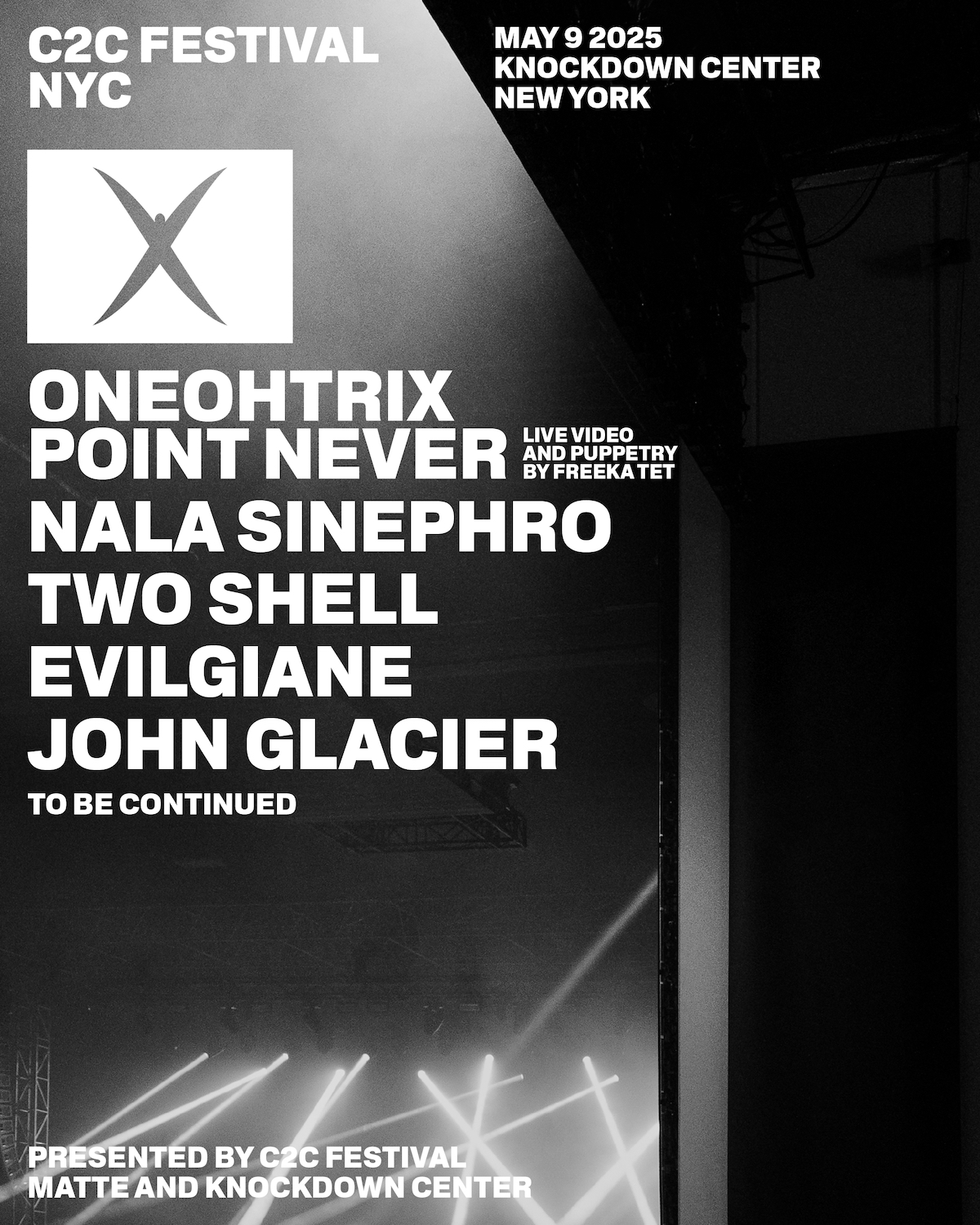 Bringing C2C Festival to the US marks a pivotal milestone in the festival's long journey," says Sergio Ricciardone, Founder and Director C2C Festival. "Over the years, C2C has grown into a global platform for contemporary and avant-garde music. Choosing the Knockdown Center as the venue for our first U.S. edition aligns with C2C's vision. Bold and forward-thinking, C2C Festival is excited to share its distinctive artistic vision —dedicated to the spirit of the avant-garde and new pop— with new communities. This event will create opportunities for cultural exchange while continuing to recontextualize music and art on a global scale.