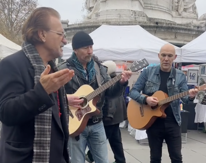 In 2015, U2 were rehearsing for their show at Paris’s Bercy Arena when terrorists attacked an Eagles Of Death Metal concert at the Bataclan concert hall less than three miles away, leaving 89 dead. On Sunday (Dec. 1) a group impersonating U2 performed in front of the Bataclan, apparently under the pretense of tribute to the victims, prompting a lot of backlash for insensitivity to the tragic event.