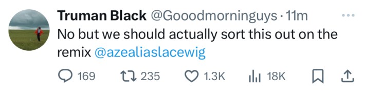 Back in 2023, when Matty Healy was dating Taylor Swift, Azealia Banks warned Swift away from him: "Taylor, this guy is gonna give you scabies." It became a Page Six story and everything. As this Reddit thread points out, Banks has also recently had words for Healy collaborator Charli XCX: "Lmao u r so damn phony Charli. U been bending over been bending over for the gays for years and they all still think ur a snoozefest. Stop being such a performative hag. The gays think ur booooooring sis give it up." Banks has continued to tweet about Charli, and it hasn't all been negative, but she's not really trying to build any bridges, either. She is also not terribly fond of Lorde.