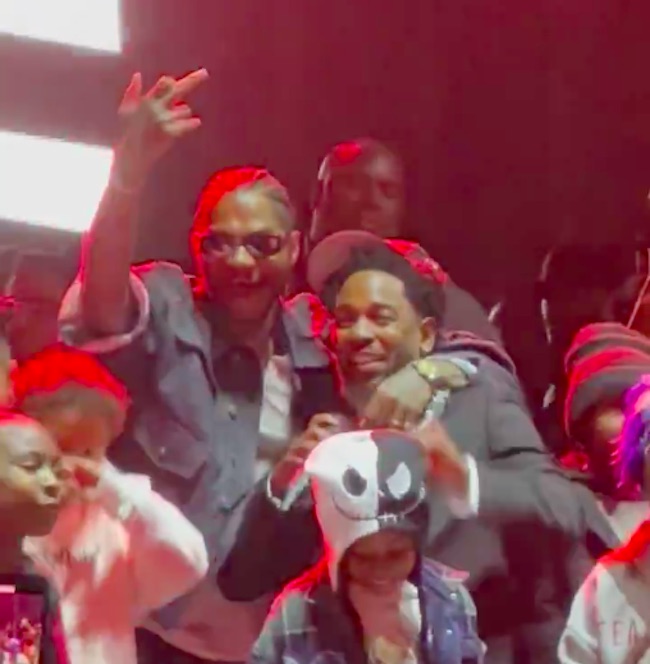 When Kendrick popped up at last night's show, he gave his first performance since his massive Pop Out concert last June, but it wasn't really a performance. It was more of a party. Kendrick basically stood up onstage with a bunch of kids and his old friend Ab-Soul, occasionally rapping along to the recording while a couple of songs played over the PA. It still makes for a great little moment, and it's technically the first time that Kendrick has ever performed "squabble up," the GNX single that recently debuted at #1. He also did his 2017 smash "Humble." He looks so happy! Watch some fan footage below.